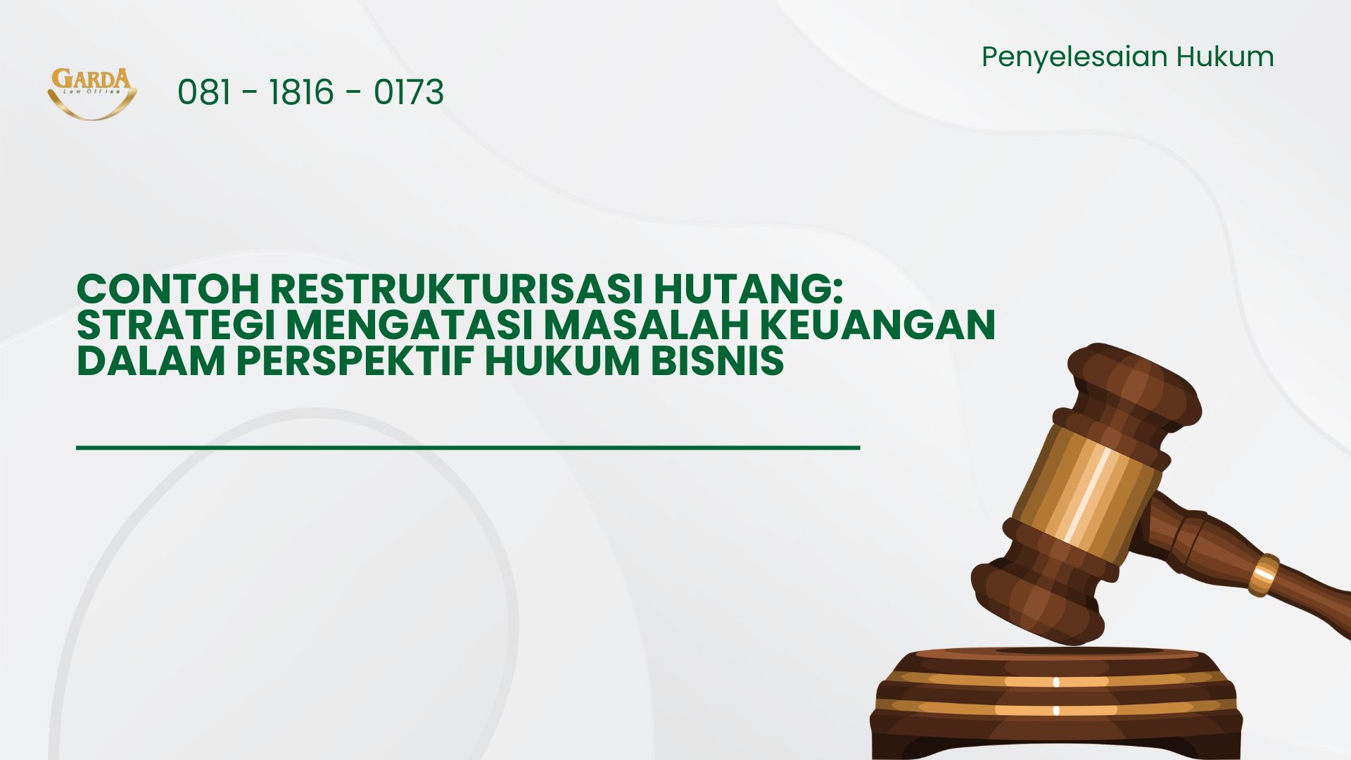 Sebagai informasi, Garda Law Office / GLO memiiki pengalaman lebih dari 20 tahun, gardalawoffice.com atau 081-1816-0173 dalam menangani berbagai kasus hukum bisnis termasuk restrukturisasi hutang dan kepailitan.