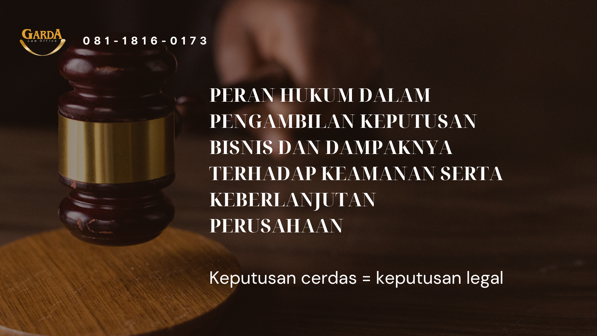 Hukum bukan penghambat bisnis, tetapi pelindungnya. Setiap keputusan yang didukung oleh dasar hukum yang kuat akan: